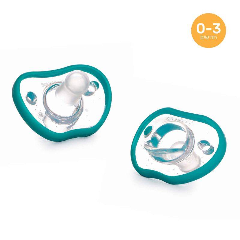 משקל קל ועיצוב ארגונומי מסייע לילד לשמור על המוצץ בתוך הפה.