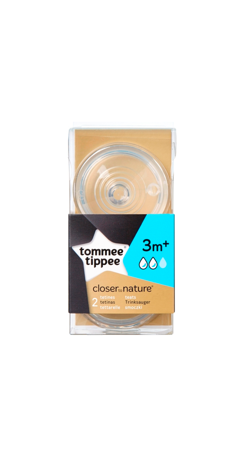 זוג פטמות בזרימה בינונית ללא ביספינול Aהפטמות עוצבו תוך חיקוי מקסימלי של הגמישות והתחושה הטבעית של שד האם הפטמות מתאימות לכל בקבוקי טומי טיפי מסדרת “הכי טבעי כמו אמא”
