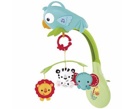 מובייל מוזיקאלי עם 4 חיות חמודות (3 חברי יער הגשם ועוד תוכי מוזיקאלי). מנגן עד 20 דקות של מנגינות נעימות. ניתן לנתק את המובייל מהציפור ולחבר לעגלה, טיולון או לידית הסלקל. עם התוכי ניתן לשחק בנפרד מהמובייל והוא משמיע מוזיקה יותר קצבית.