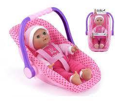 בובה עם גוף רך בגודל 30 ס"מ עם עיניים ישנוניות בתוך ערסל מושב המכונית שלה כולל ידית נשיאה