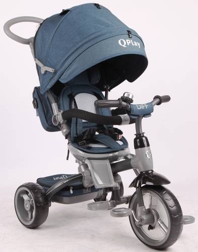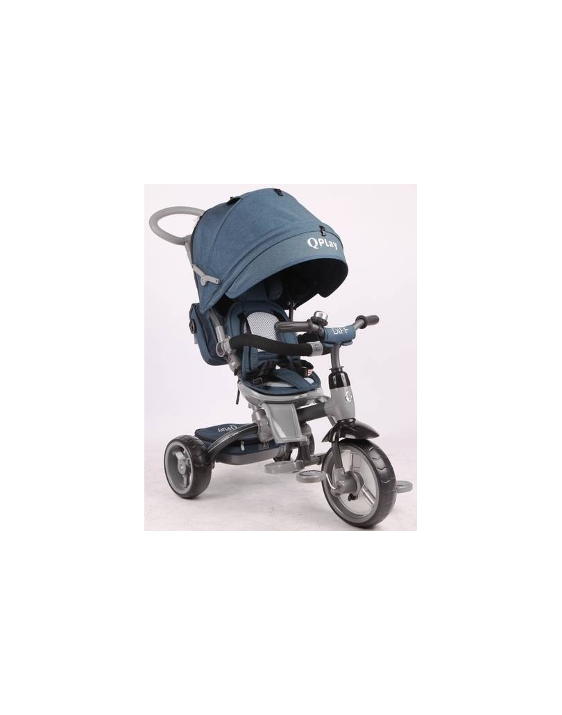 תלת אופן 6 ב 1 עם מושב מסתובב 360 ובדי ג'ינס יוקרתיים DIFF בכחול Q Play