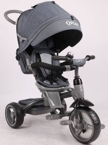 תלת אופן 6 ב 1 עם מושב מסתובב 360 ובדי ג'ינס יוקרתיים DIFF באפור Q Play