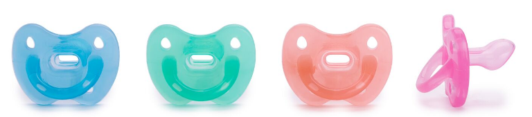 מוצץ סיליקון עשוי יחידה אחת במגוון צבעים מרהיב.למוצץ פטמת סיליקון אנטומית המחקה את צורת פטמת האם ומתאימה עצמה באופן מושלם לפיו של התינוק