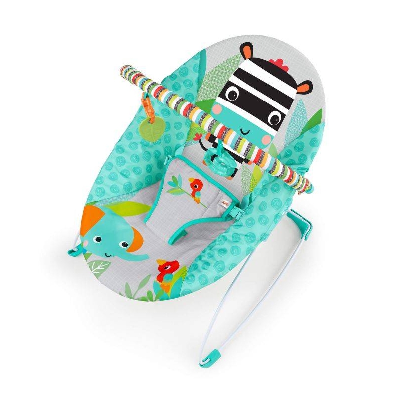טרמפולינה רחבה ומרווחת לתינוק עם בר צעצועים הניתן לשליפה ביד אחת לגישה נוחה. צבעונית ומאווירת בדמויות של חיות ידידותיות. אפשרות רטט מסייעת לרגיעה של התינוק ולהשארתו שמח ונינוח במושב הכיסא. כוללת שני צעצועי תלייה.