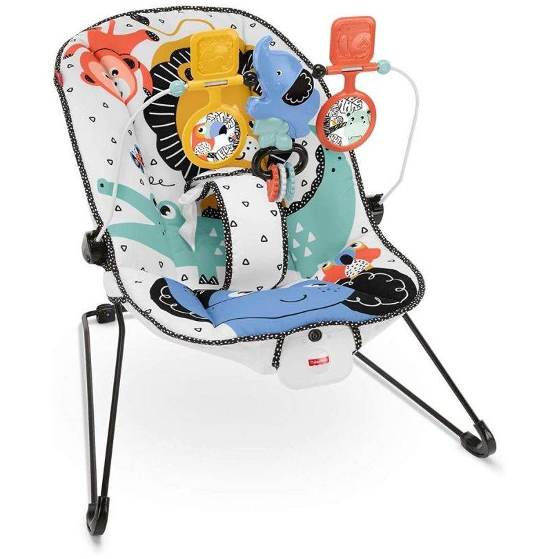 כיסא תינוקות מקפץ עם בר צעצועים ניתן להסרה. מושב תינוק נייד המקפץ יחד עם תנועת התינוק. בעל תנודות מרגיעות במיוחד ורתמה עם 3 נקודות מגע המסייעת בשמירה על בטיחות התינוק
