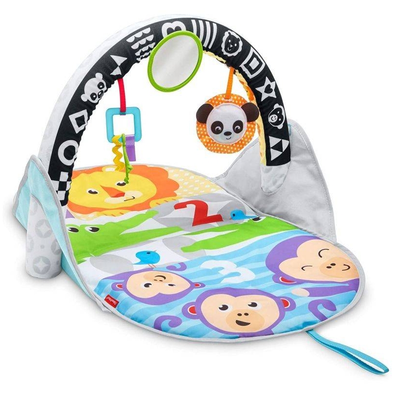 כולל 3 צעצועי תלייה הניתנים להסרה : מראה לחיזוק הכרת האני של התינוק , רעשן פנדה וצעצועי למישוש.
