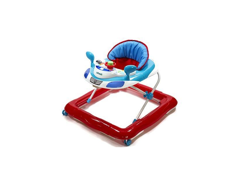 הליכון לתינוק icon בצבעי אדום כחול, מותאם למבנה גופו וגובהו של תינוקך תוך כדי הבטחה שכפות רגליו נוגעות ברצפה בצורה נכונה על פי המלצות אורטופדים.