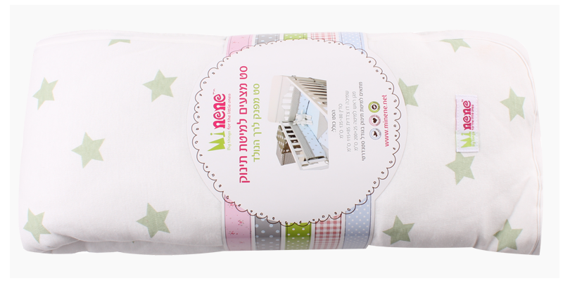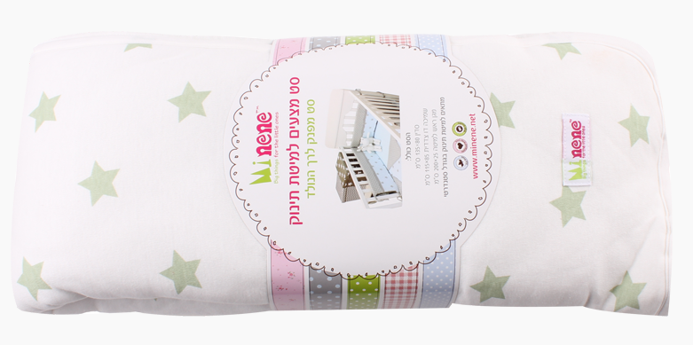 סט מצעים לעריסת תינוק שמנת ירוק כוכבים MINENE