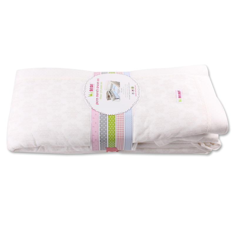 מידות: סדין 135*80 ס"מ, שמיכה 115*85 ס"מ, מגן ראש 200*25 ס"מ.