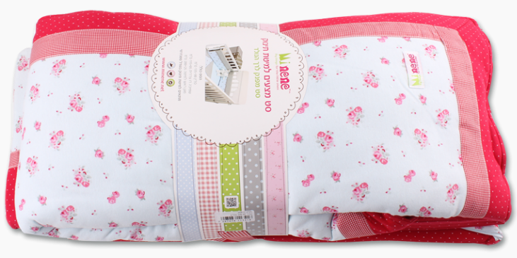 מידות: סדין 135*80 ס"מ, שמיכה 115*85 ס"מ, מגן ראש 200*25 ס"מ.