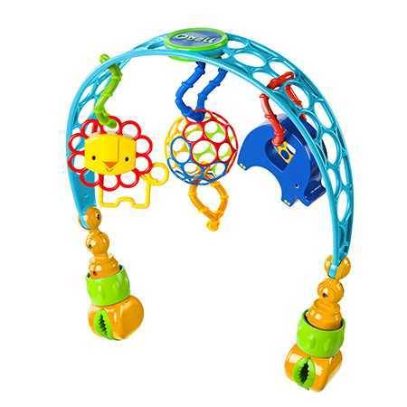על הקשת תלויים צעצועים מקסימים המעוררים את חושיו של התינוק וידאגו לתעסוקה מהנה לתינוק בזמן השהייה בעגלה או בסל קל.