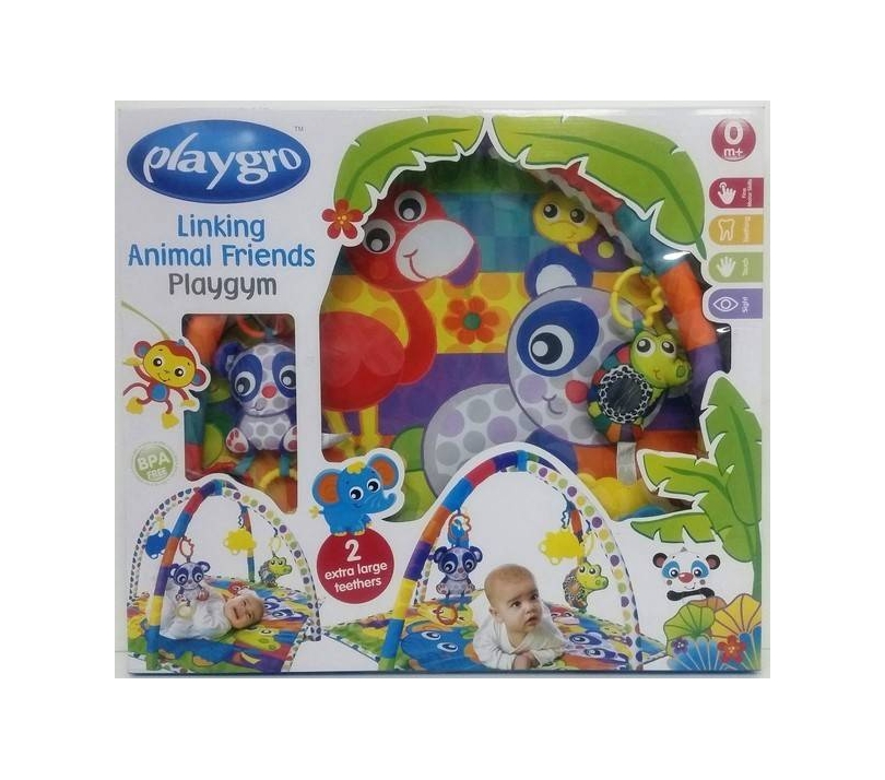 האוניברסיטה האינטראקטיבית מעודד את התינוק להושיט את ידיו, למשוך ולשחק עם החיות המתוקות התלויות על הקשתות. בנוסף מצורפים גל נשכנים הניתנים לתלייה. המשטח צבעוני ורך במיוחד.