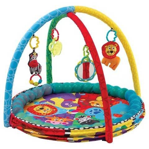 חדר הכושר מגיע גם עם 32 כדורי פלסטיק צבעוניים שיכול להיות מאובטח מסביב לקצה של הקן או רופף בחדר למשחק.