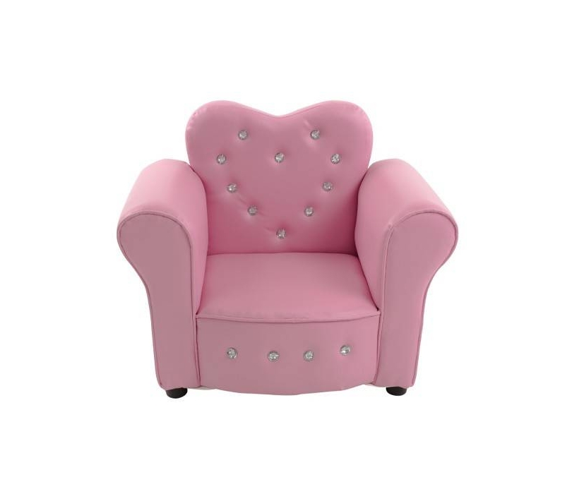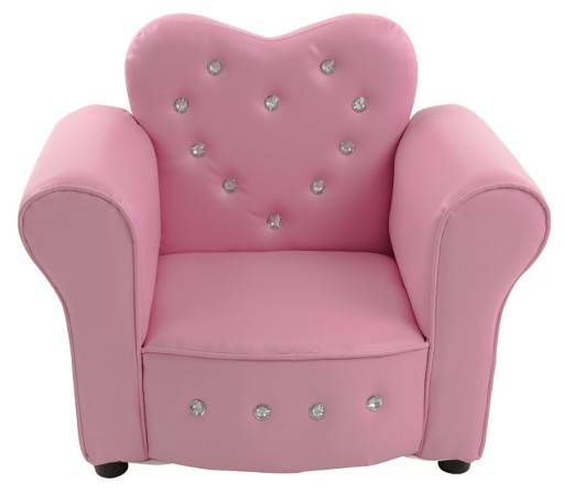 ספה לילדים בצורת לב, משובצת בכפתורים דמויי קריסטל להשלמת המראה המלכותי.
