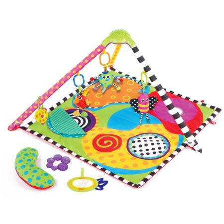 מערכת קשת ייחודית (3 קשתות) מציעה יציבות רבה ויותר מקום כדי לשחק עם התינוק . מכיל אלמנטים של : סיבה ותוצאה boo – Peek-a,רעשים המגרים את חושי השמיעה (קימוטי בדים )של התינוק ומראה על פני השטח מחצלת .ניתן לרחיצה משטח עם דפוסי ניגודיות גבוהה מפתחת מיומנויות חזותיות.