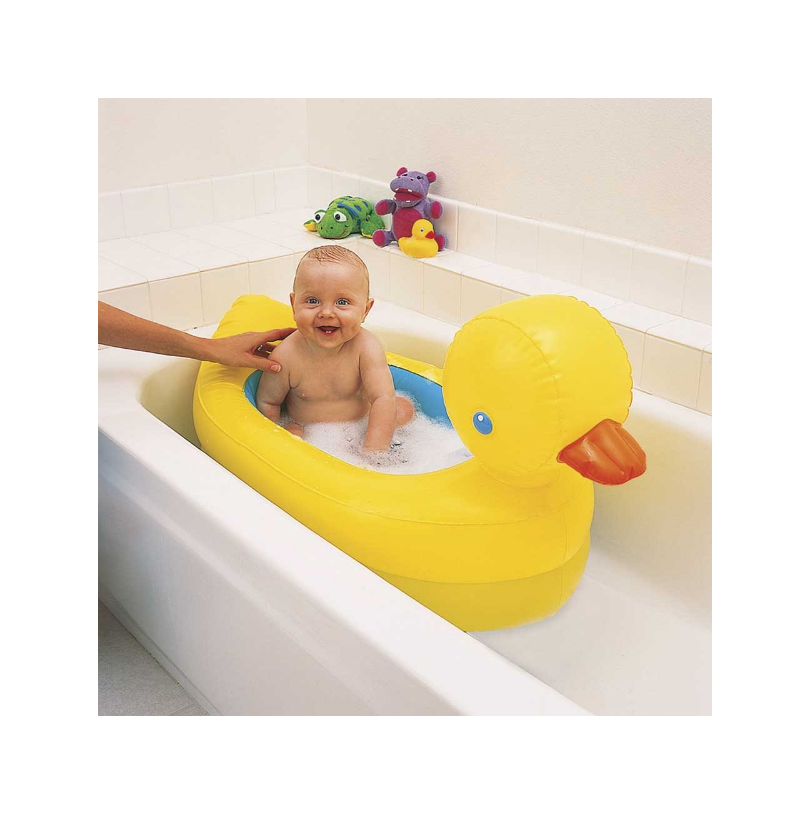 אמבטיה מתנפחת בדמות ברווז ההופכת את שעת הרחצה למהנה ומשעשעת עבור התינוקכולל דסקית בטיחות ההופכת ללבנה כשהמים חמים מדי עבור התינוק משטח האמבטיה מרופד ומעוצב בטיחותית באופן המונע מהתינוק להחליק בו. כולל משענת ראש המקלה על שטיפת הראש של התינוק. לחיצה על המקור משמיעה קולות של ברווז מגעגע. נתלה לייבוש באמצעות פיית וואקום. אידיאלי לנסיעות, ניתן להוציא את האוויר ולקפל בקלות-יתרון מהותי באחסנה, נוח לנשיאה. מידות: 79X48 ס"מ.
