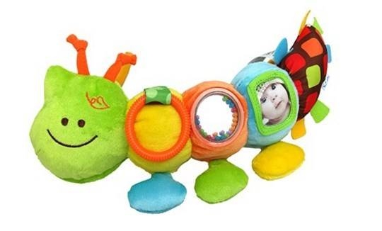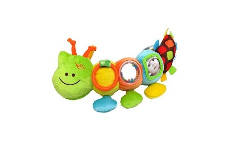 זחל רך צבעוני ונעים למגע העשוי מבד.התינוק יכול להסתכל במראה, לנער את החרוזים הצבעונים ולהנות מהמרקמים. מעורר את החושים של התינוק.