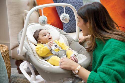 נדנדה חדשנית בעלת כיווני נדנוד המדמים ערסול ונידנוד התינוק על הידיים.
