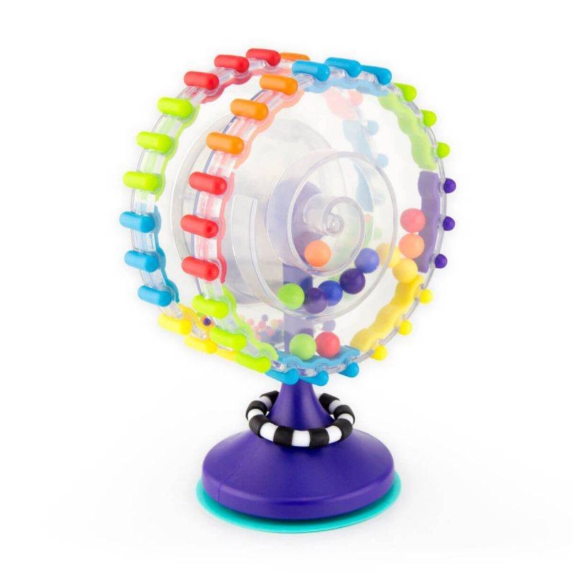 זוג גלגלי פלא מסתחררים בעיצוב מרהיב, צבעים בולטים ומפל חרוזים מרתק את התינוק. הגלגלים המסתחררים מעודדים את התינוק להושיט יד, לחבוט, לסובב תוך כדי הפקת הנאה ממפל החרוזים, מגוון הצבעים והצלילים.