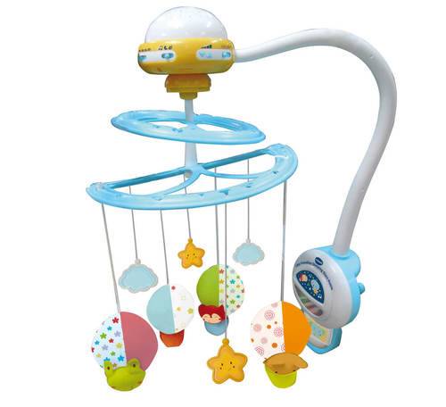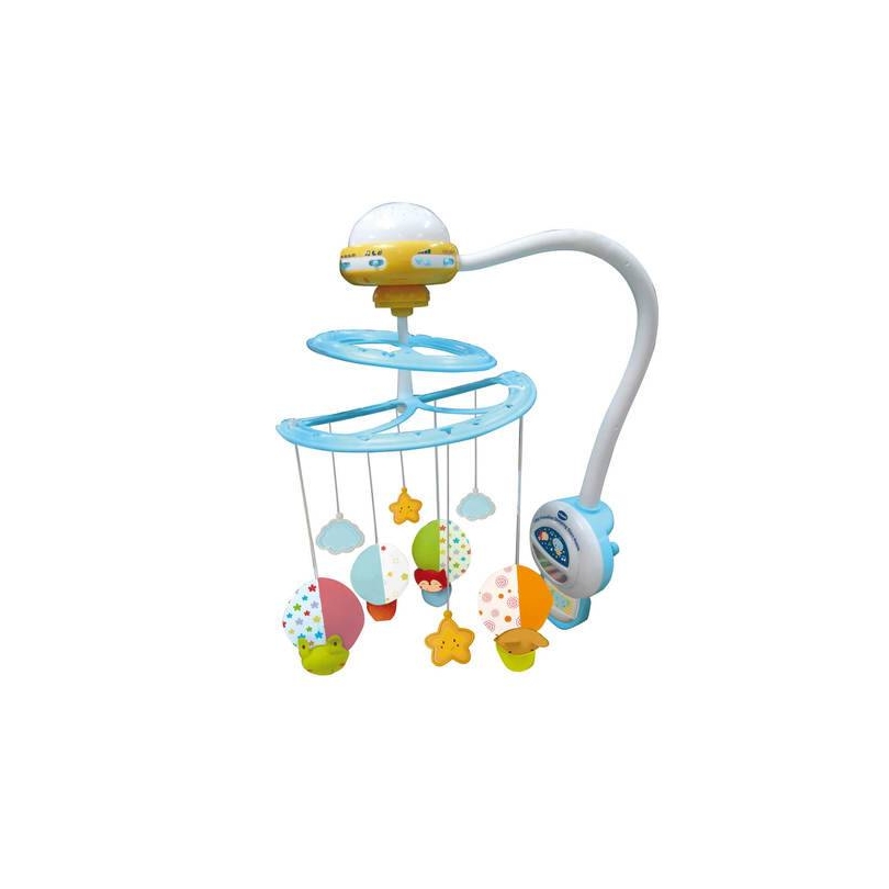 מובייל כוכבים עם מקרן לתאורת תקרה ומעל 70 מנגינות נעימות ומרגיעות. כולל בובות מתוקות ומרגיעות. למובייל ישנה חיישן קול המתחיל לנגן ברגע שהוא מזהה בכי תינוק.
